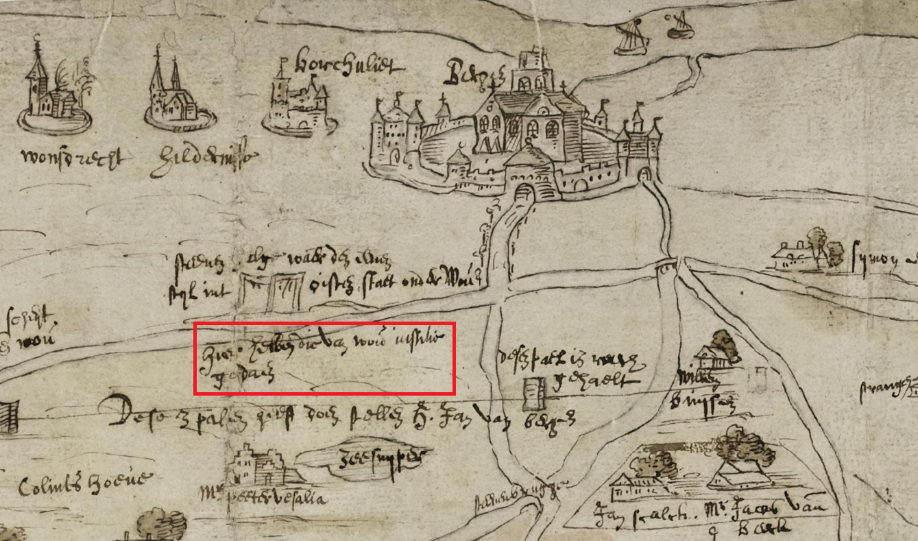 Volgens de zeventiende- en achtiende-eeuwse bronnen was het gelegen “op de heide”. Achttiende-eeuwse kaarten laten zien dat daar toentertijd inderdaad een galg bij de stenen brug over de Zoom stond (vlakbij de Wouwse tol) dus ook in de vroegmoderne tijd stond de Wouwse galg kennelijk aan de baan naar Bergen.