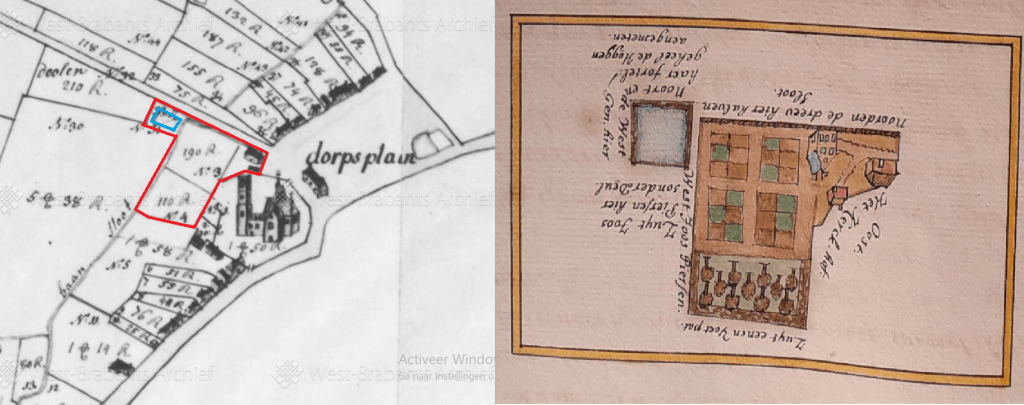 De kaart die Judocus Bal in 1661 van de percelen heeft getekend stelt ons in staat dit land op de kaart van 1758 van de landmeter Henri Adan en de kaart van 1784 van J.B. Adan terug te vinden. Opvallend is dat alles er vrijwel nog precies zo bij lag (incl. vijver) als 100 tot 120 jaar daarvoor. De landafmetingen (roeden) van het perceel waren ook niet veranderd.