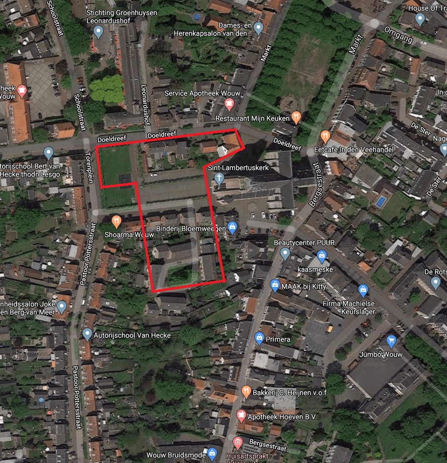 Het perceel waar het om gaat is waarschijnlijk één van de oudste stukjes van het dorp dat met zekerheid geplaatst kan worden; namelijk een stuk land met hofstede, gracht en tuin bewesten het ommuurde kerkhof van de kerk van Wouw dat oorspronkelijk aan de heer van Breda, Arnoud van Leuven, en zijn vrouw Elisabeth had toebehoord. Zij schonken dit land in 1285 aan de Sint-Bernardsabdij van Hemiksem (het hedendaagse Bornem bij Antwerpen).