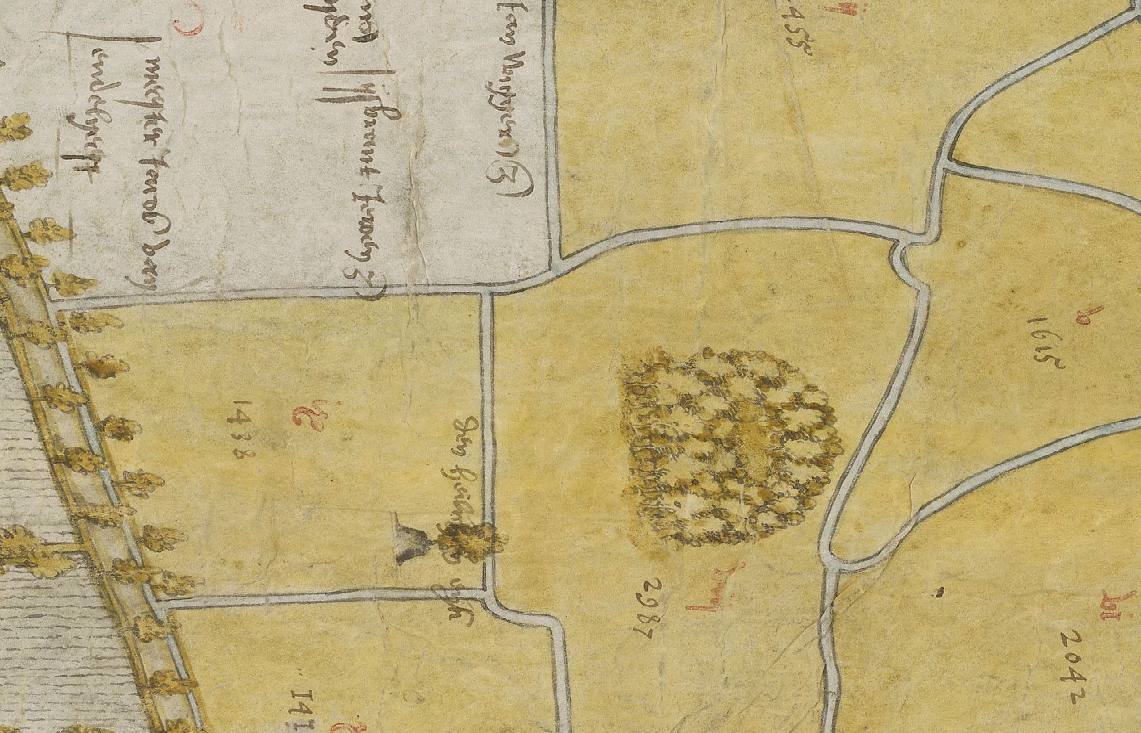Op een landmeterskaart uit 1550 van Jacob Coenszoon zien we hoe het kasteelterrein er in de zestiende eeuw bijlag; het staat afgebeeld als een ronde beboste plek midden in het weiland. Ten westen van dit terrein staat een eikenboom getekend, voorzien van de beschrijving “den heilichen eyck”. Vermoedelijk gaat het hier om een oude vergaderplaats, wat zou passen in het scenario dat op het terrein al voor de twaalfde eeuw de hofstede van de heer stond.8