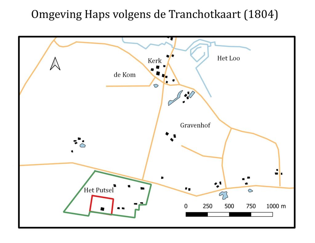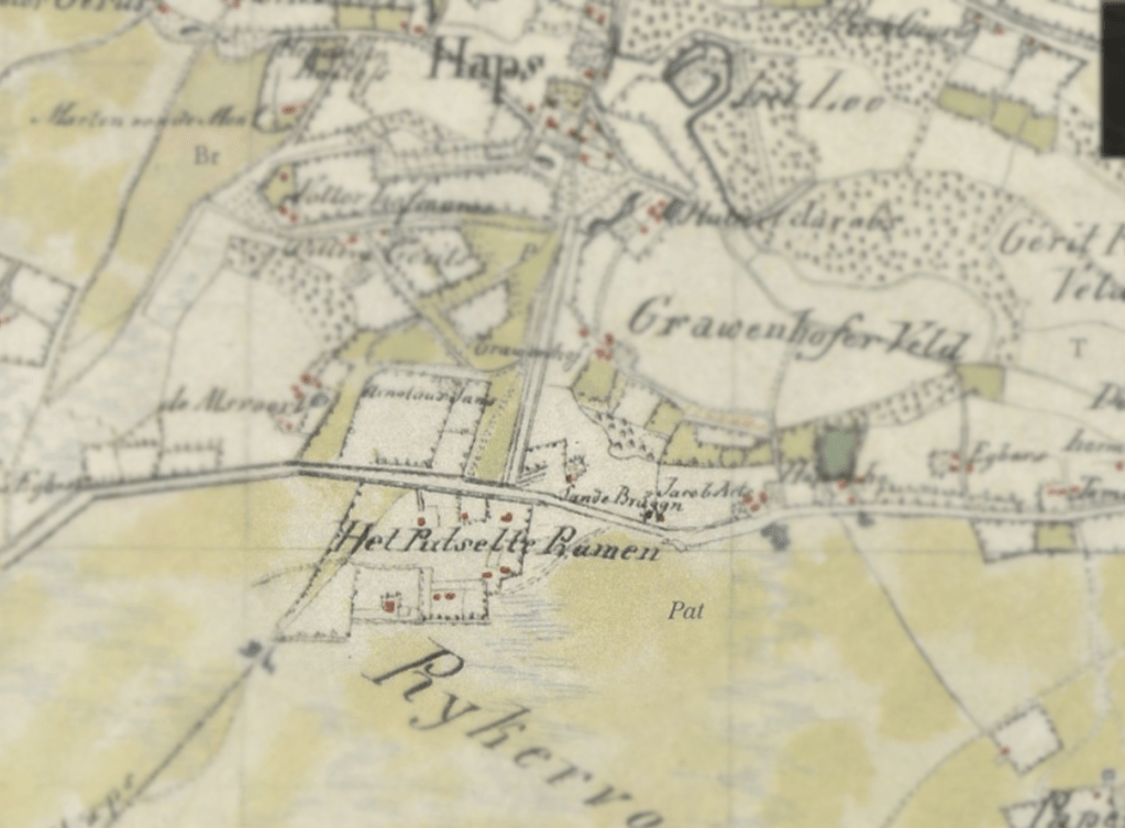 Wanneer je op een topografische kaart van Nederland kijkt, zul je zien dat rond veel dorpen kleinere gehuchtsnamen ingetekend staan. Deze gehuchten zijn tegenwoordig vaak al verdwenen of niet veel groter dan een paar boerderijen langs een boerenweg. In dit artikel verken ik de oorsprong van een gehucht dat ten zuiden van het Oost-Brabantse dorp Haps ligt. Uit deze verkenning zal blijken dat we aan de hand van zo’n gehuchtsnaam ver terug de plattelandsgeschiedenis in kunnen.