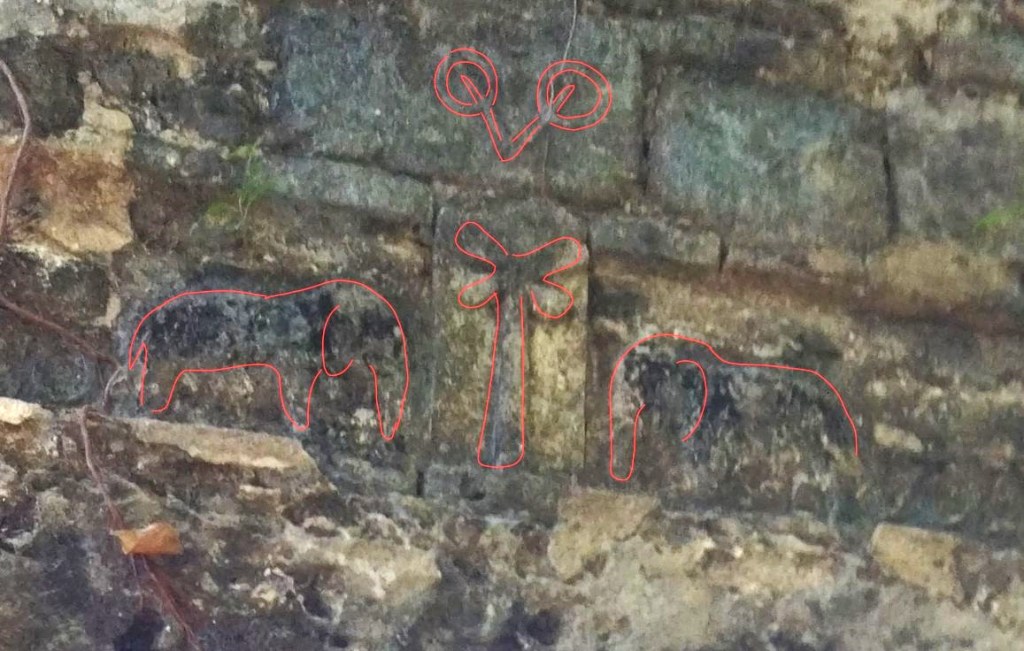 VoC-logo met twee olifanten in poortgebouw voor zichtbaarheid gemarkeerd (Creative Commons. auteur: A.E. Kerkhof)