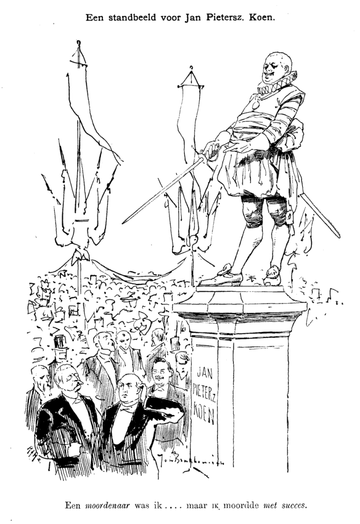Over het standbeeld van Jan Pieterszoon Coen wordt tegenwoordig vaak geschreven – vorig jaar in het wetenschapskatern van de Volkskrant bijvoorbeeld – dat het beeld al vanaf de oprichting bekritiseerd werd. Die afkeur moeten we echter wel in context plaatsen: geheel onomstreden was geen enkel standbeeld in de negentiende eeuw. Tegen de beelden van Rembrandt en Vondel werden hele traktaatjes gewijd, en het monument voor de politicus Thorbecke lag zo gevoelig in de Haagse gemeenteraad dat de commissie het uit wanhoop maar in Amsterdam neerzette. We moeten de anderhalve pagina’s in Recht voor Allen en de Amsterdammer tegen Coen ook niet groter maken dan zij waren. Het grote verschil was dat de reactie voor het eerst eens niet uit de conservatieve hoek kwam.