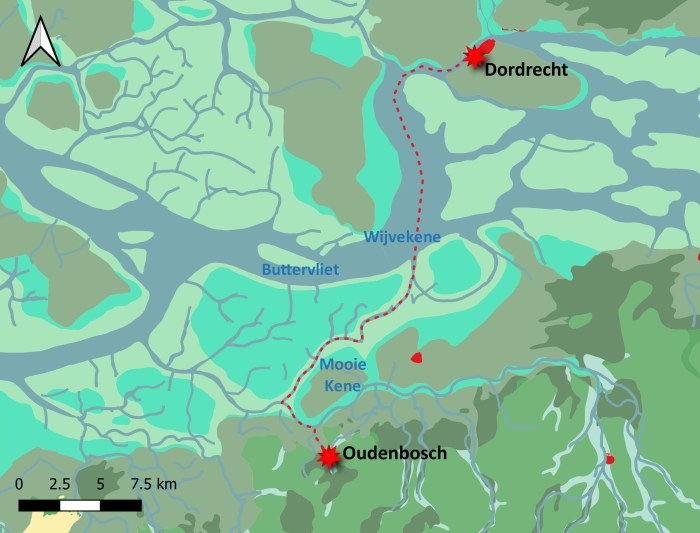 Een ander interessant voorbeeld is het Konyngesdiep, een middeleeuwse benaming voor de noordelijke rivieren de Kuinder en de Boorne die in een veertiende-eeuwse Nedersaksische wettekst (landrecht van Stellingwerf) wordt genoemd. Deze ‘diep’-naam verwees naar de Karolingische koninklijke waterwegen die dienden als strategische routes voor militaire doeleinden. Dit betekent dat de naam in de veertiende eeuw al ontzettend archaïsch moet zijn geweest! Het verbaast dus niet dat er verder geen sporen van deze oude (hoogmiddeleeuwse) diep-namen teruggevonden zijn.