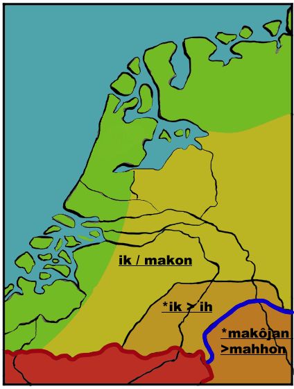 Het Oudfrankische taalgebied werd in de zevende eeuw door zo’n Continentaal-Germaanse innovatie doormidden gescheurd; het gaat hier om een reeks klankveranderingen die de Oudhoogduitse klankverschuiving heet. De Frankische dialecten die in de zevende eeuw meededen aan deze verschuiving noemen we nu met terugwerkende kracht Duits. De Frankische dialecten in België en Nederland deden aan deze verschuiving (grotendeels) niet mee. Deze dialecten noemen we met terugwerkende kracht Nederlands. Deze klankverschuiving is de reden waarom de Duitsers machen zeggen en wij in het Nederlands maken. Het Nederlandse taalgebied werd op deze manier van de aangrenzende dialecten in het Duitse Rijnland gescheiden. We kunnen de zevende eeuw dan ook als geboortepunt van het Nederlands beschouwen.