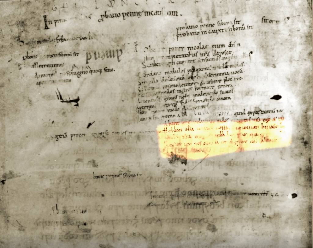 Het beroemdste Oudnederlandse tekstmonument is natuurlijk de Rochester Probatio Pennae, ook wel bekend als het hebban olla vogala-gedichtje. Maar dit is eigenlijk één van de jongste en minst belangrijke Oudnederlandse teksten en bovendien ontzettend kort! Het gedichtje werd pas aan het einde van de elfde eeuw als pennenproef (in het Latijn probatio pennae) in Engeland opgeschreven.