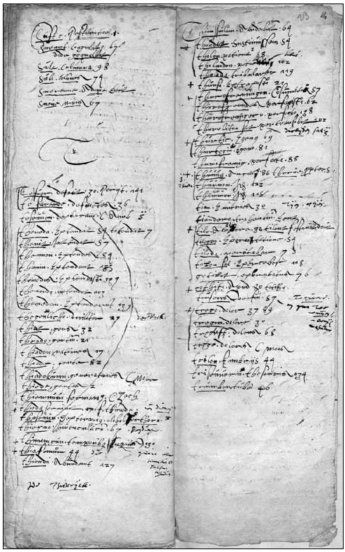 - Honderden losse Nederlandse woordjes in Latijnse handschriften, vaak opgetekend in verklarende woordenlijsten. Dit soort losse woordjes worden glossen genoemd.