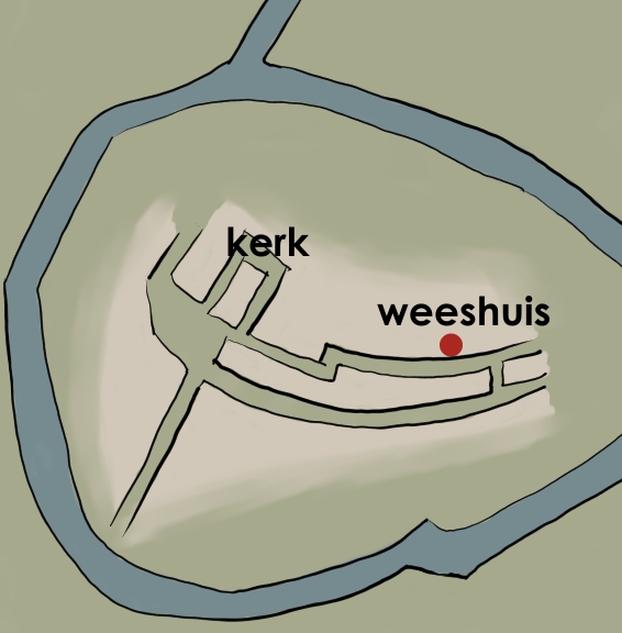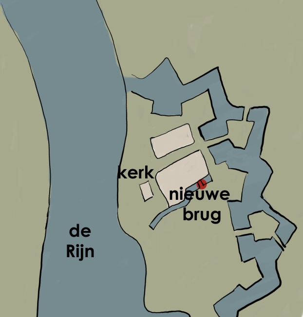Plattegrond Zaltbommel ca. 1735 met locatie galgenveld. Illustratie: A.E. Kerkhof