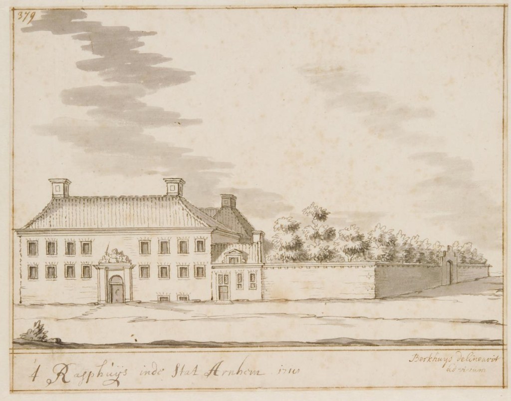 Tuchthuis van Arnhem, 1718, L.M. Berkhuys.Bron: Gelders Archief